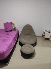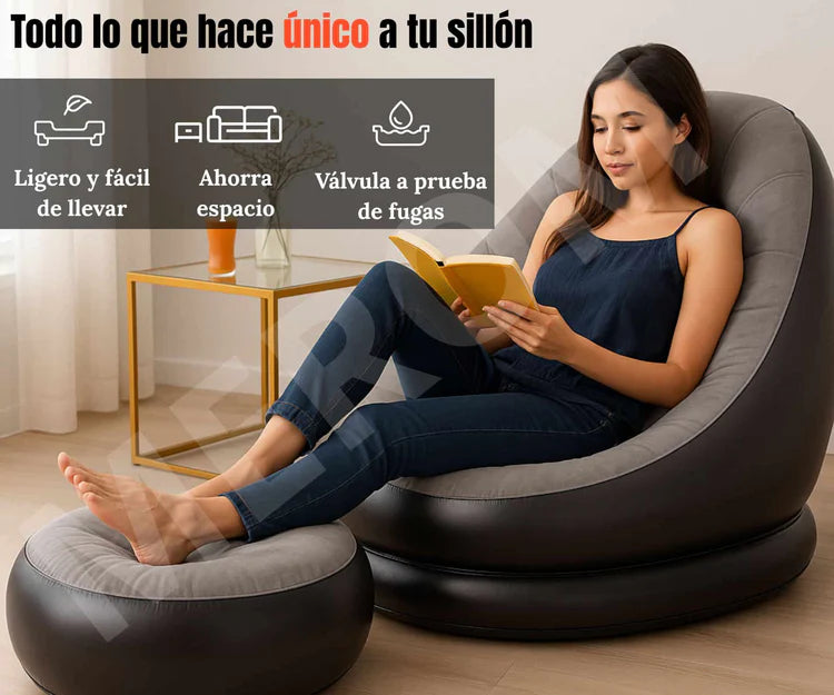 se infla en segundos sin bomba, ligero, resistente e impermeable. Perfecto para playa, camping o casa. 🏖️ Olvídate de cargar sillas incómodas — con este sofá descansas donde quieras con total comodidad. 🛋️